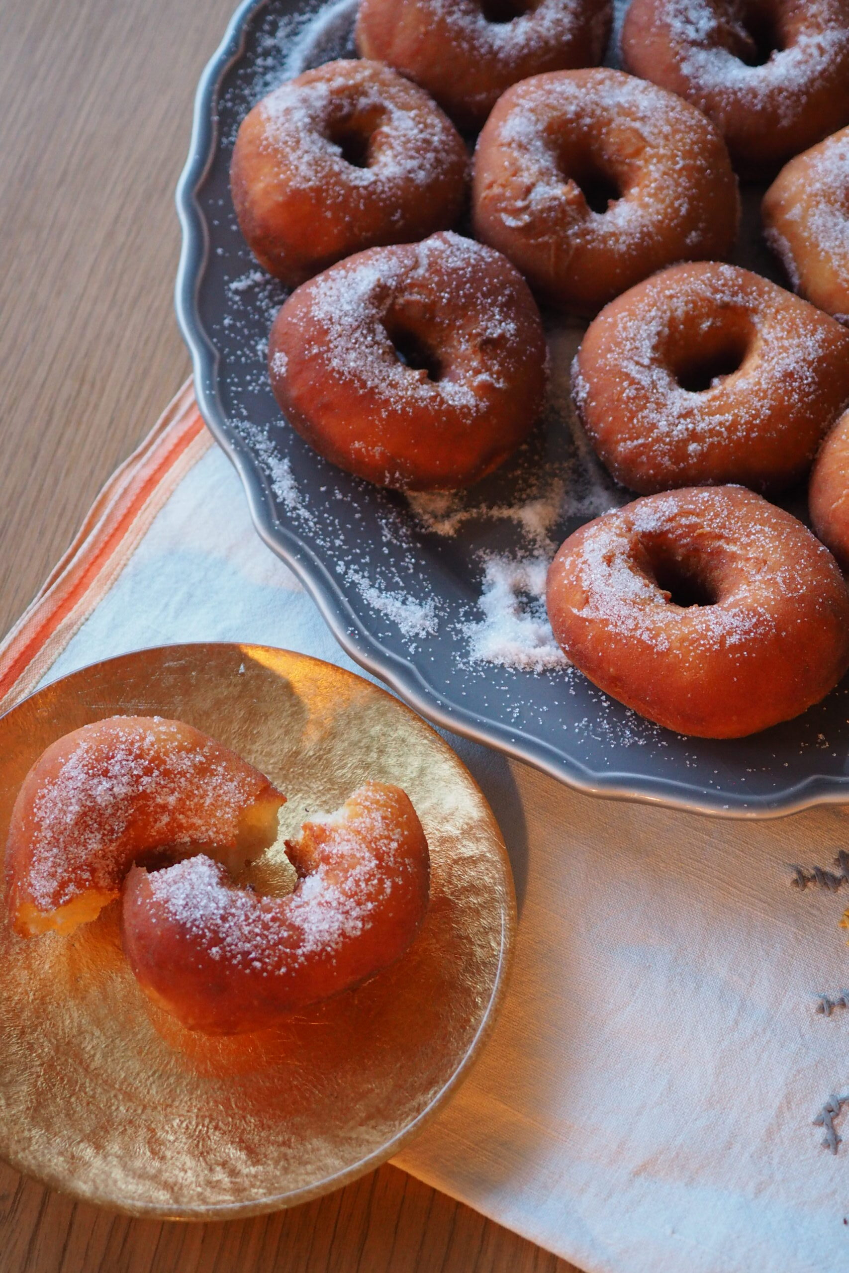 Ciasto wykładamy na stolnicę, wyrabiamy i rozwałkowujemy na grubość ok 3cm. Okrągłym, niedużym naczyniem wykrawamy koła i formujemy z nich kule. Każdą kulę delikatnie spłaszczamy i palcem wskazującym robimy wgłębienie na środku. Lekko okręcamy wokół palca tak aby powstała oponka ( można posmarować palec olejem to łatwiej będzie okręcać). Odstawiamy je z powrotem w ciepłe miejsce do wyrośnięcia na ok 10 minut..