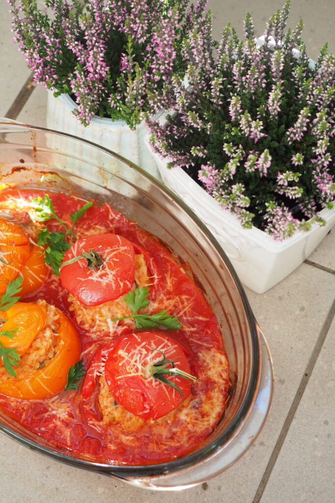 Sezon na pomidory mamy w pełni. Są dorodne, soczyste, pachnące pomidorami i aż prosi się aby je teraz jeść i przygotowywać różne dania z ich udziałem. Dziś pomidory faszerowane ryżem z mięsem mielonym i ziołami. Proste i pyszne danie na obiad lub ciepłą kolację.