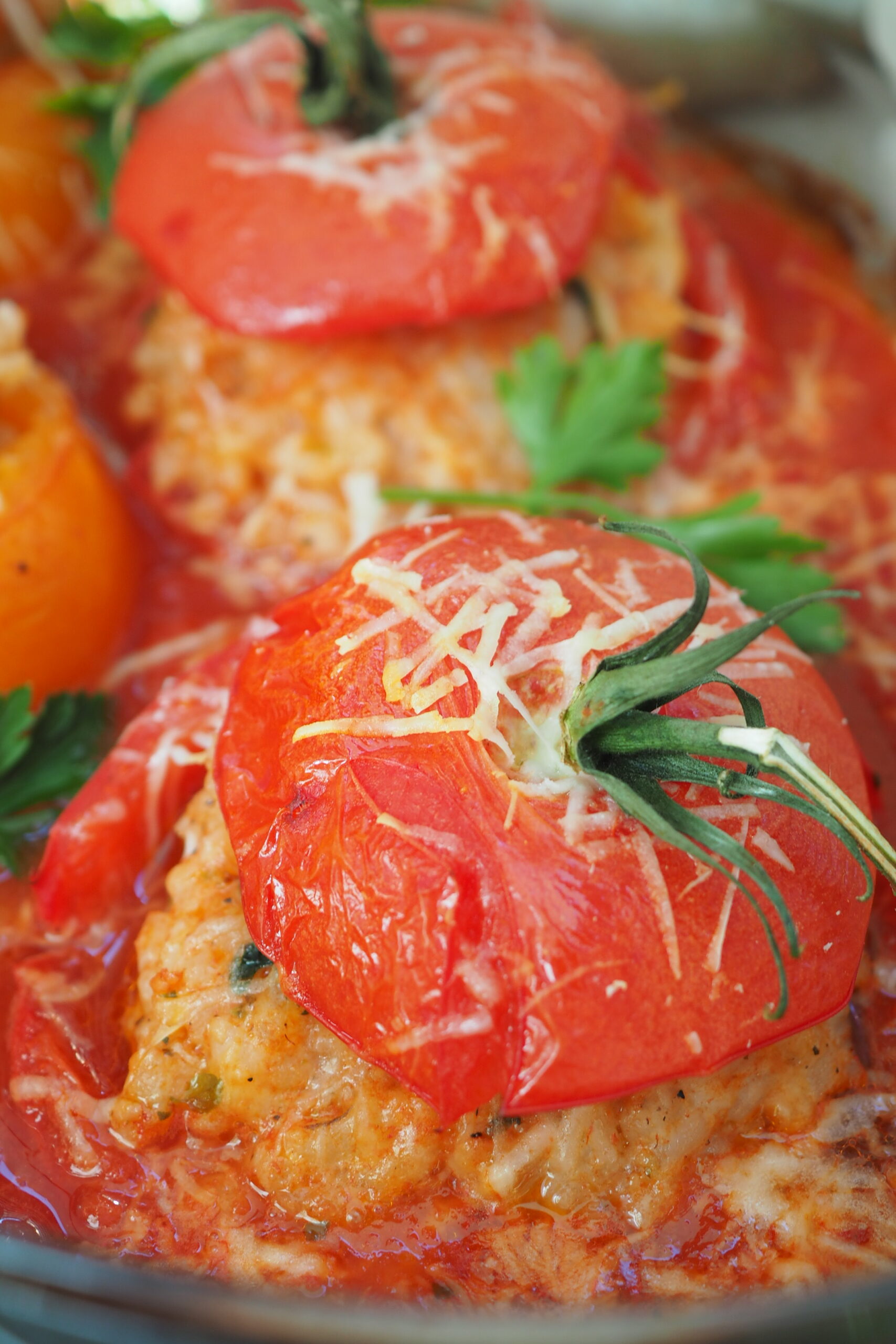 Sezon na pomidory mamy w pełni. Są dorodne, soczyste, pachnące pomidorami i aż prosi się aby je teraz jeść i przygotowywać różne dania z ich udziałem. Dziś pomidory faszerowane ryżem z mięsem mielonym i ziołami. Proste i pyszne danie na obiad lub ciepłą kolację.