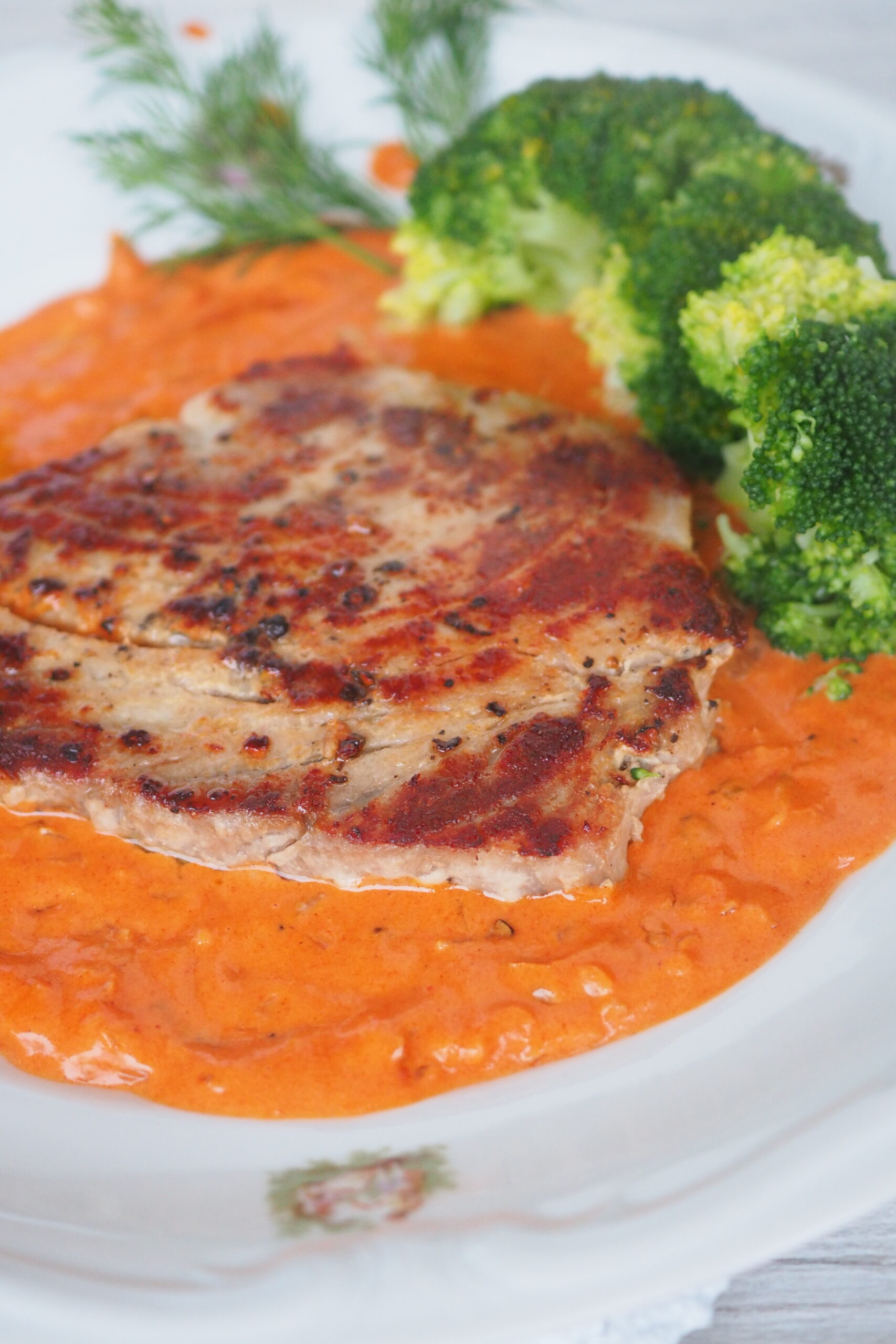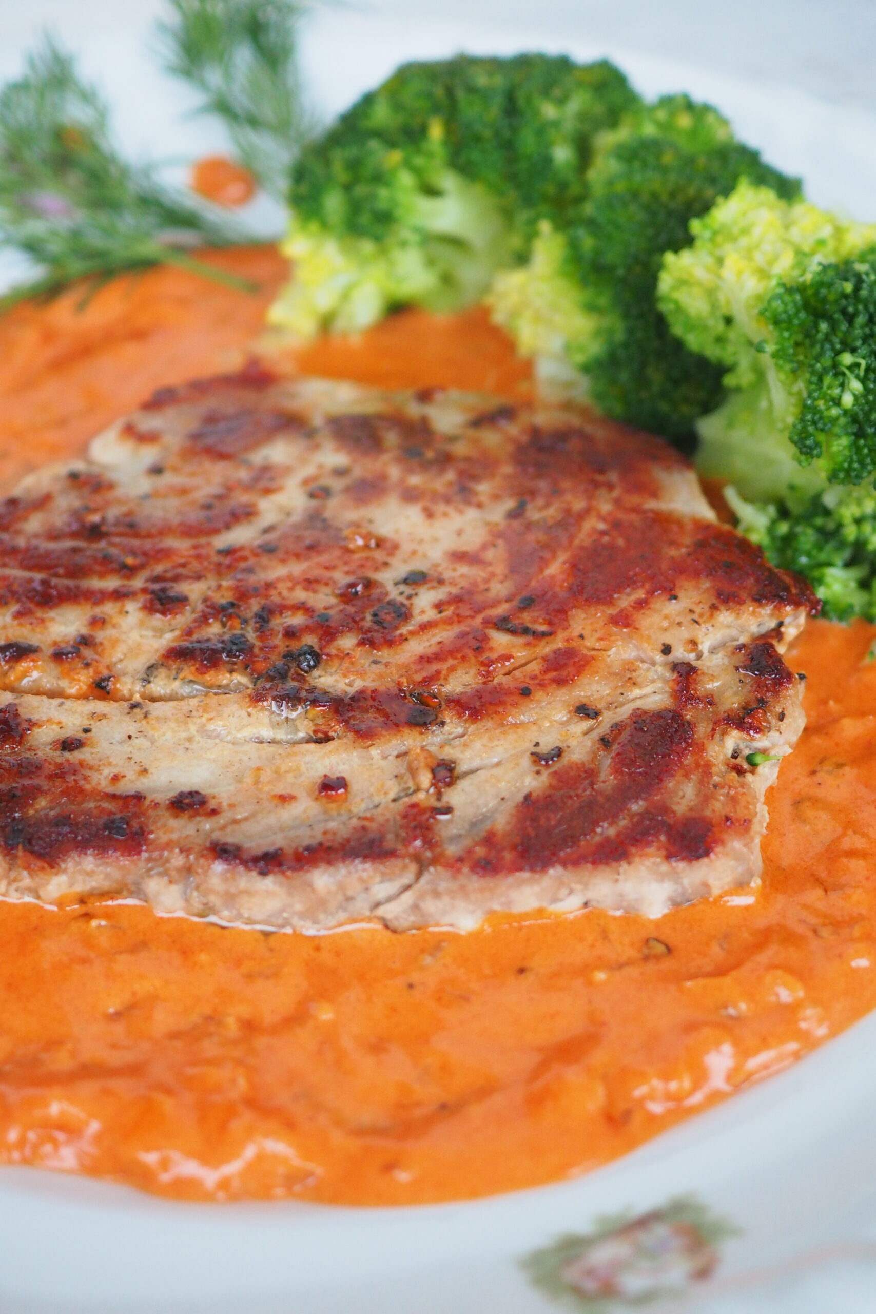 Świeże steki z tuńczyka są dostępne u nas w dobrych delikatesach rybnych lub w Auchan. Dziś mam dla wielbicieli tuńczyka steki z sosem pomidorowo-paprykowym. Danie jest bardzo pyszne, sos wspaniale komponuje się ze stekami i robi się je bardzo szybko.