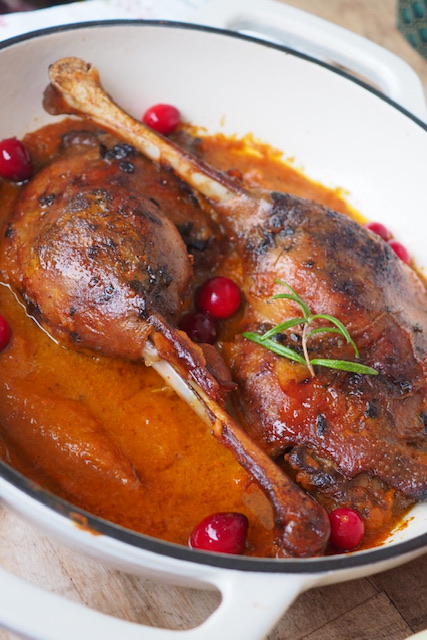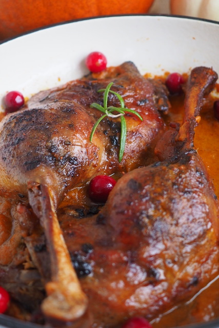 Skoro mamy za chwilę 11 listopada to u mnie musi stać się zadość tradycji i na stole gości gęsina. Tym razem są to uda gęsi w przepysznym sosie z dyni, czerwonej cebuli, świeżej żurawiny w aromacie rozmarynu.
